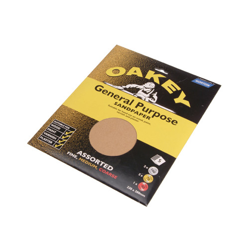 Oakey premium glasspaper sheets perfect for any hand sanding project on a variety of surfaces including wood, paint, varnish and plaster.