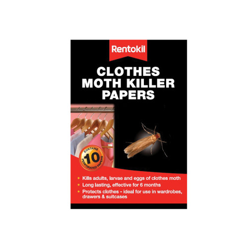 Rentokil Clothes Moth Papers kill moths, their larvae and eggs with an odourless insecticide impregnated into a paper strip. Ideal for protecting clothes, especially in storage and bedding, for up to 6 months. No laundering or dry cleaning is required after use.