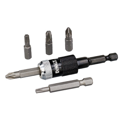The DEWALT DT71514 features the compact rapid load bit holder which is designed for easy insertion and removal of hex shank accessories. The integrated floating magnetic ring holds screws when used in conjunction with 25mm long screwdriver bits, while the removable silver collar allows for easy cleaning of the tip from any debris or swarf build up. This set is impact rated for use with impact drivers.