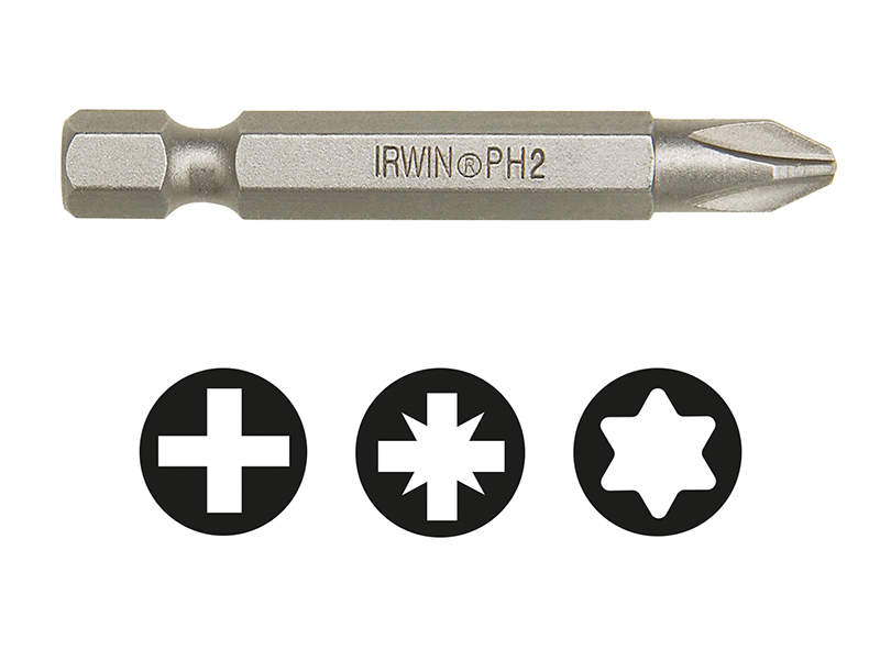 The Irwin Phillips Power bits are specially designed for the higher torque requirements of power tools. They are designed to provide more clearance between the power tool and the fastener.