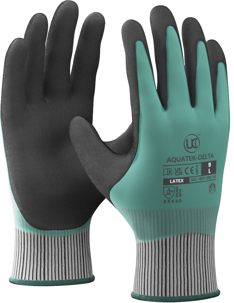 The Aquatek-Delta, featuring an advanced ISO D cut-resistant liner integrated into our proven Aquatek design. The dual latex foam coating delivers complete waterproofing while maintaining superior grip across all conditions—whether wet or dry. Reinforced with HPPE and steel throughout the liner, these gloves provide comprehensive ISO Cut D protection. The ergonomic design minimizes hand strain and maximizes comfort during extended wear. Instantly identifiable by their green colour coding for quick workplace safety identification.