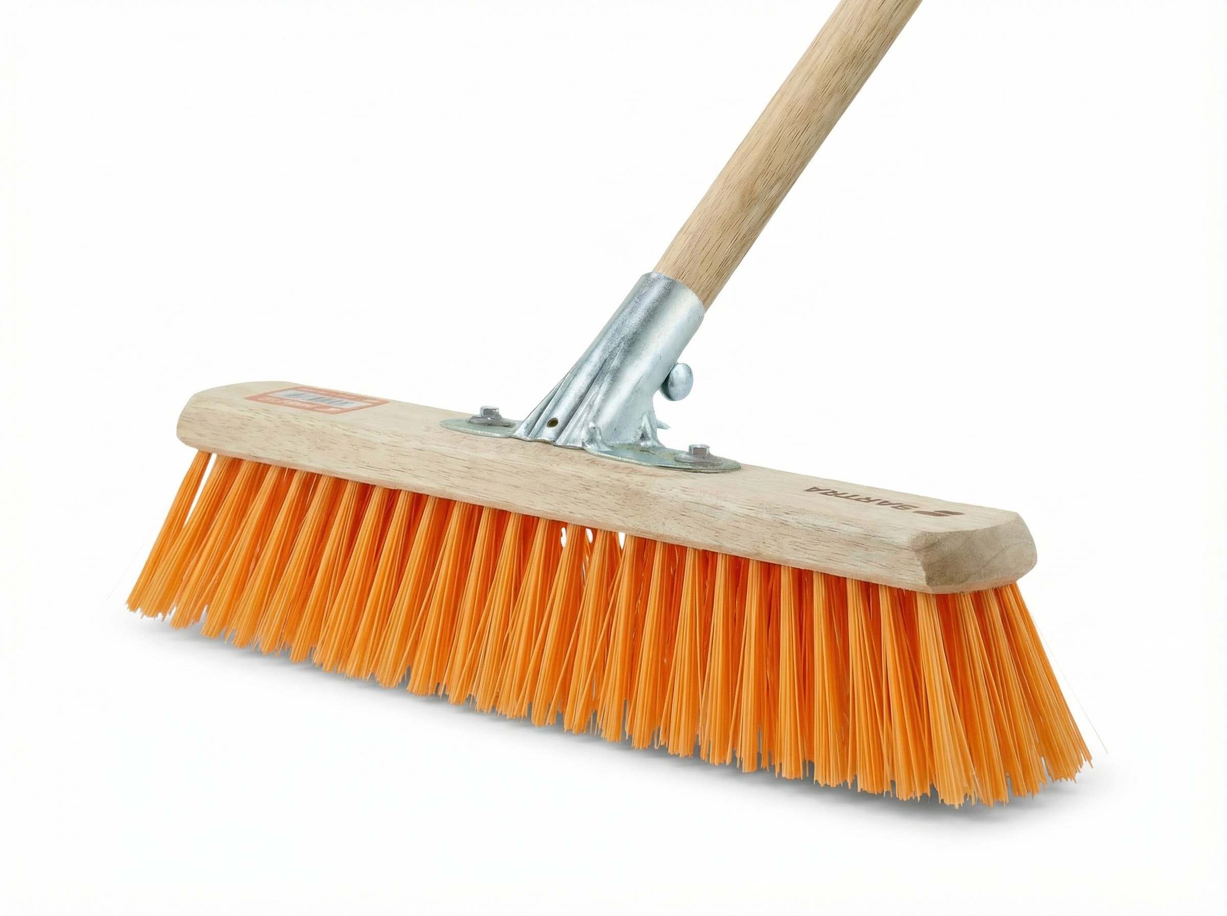 •Polypropylene filled broom ideal heavy duty sweeping •Stays stiff when wet •Heavy duty galvanised bracket at the perfect angle to allow working in upright position, reducing back strain Premium hardwood handle that doesn’t flex/ bend Width: 18”/ 450mm